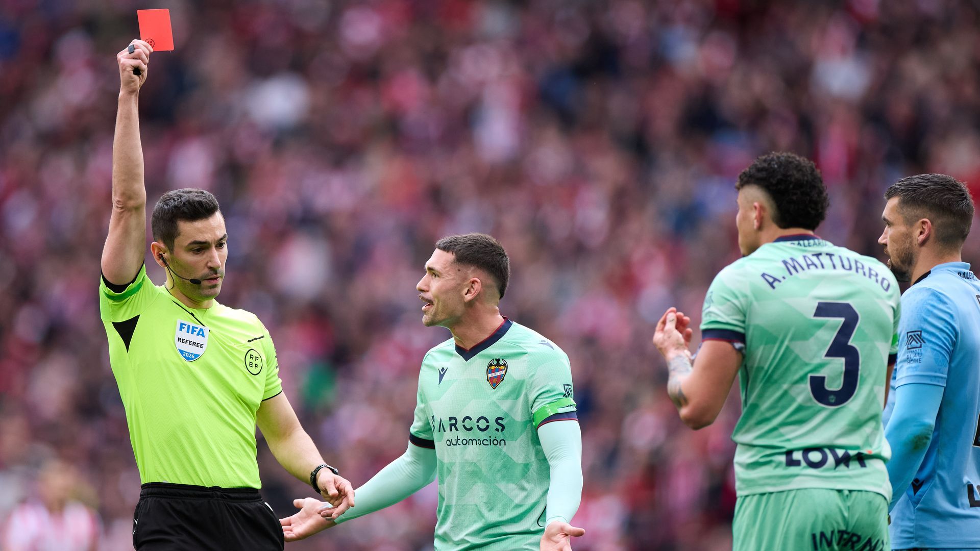 La expulsión de Matturro condenó al Levante y a que sus compañeros no pudieran hacer nada por salvar el resultado