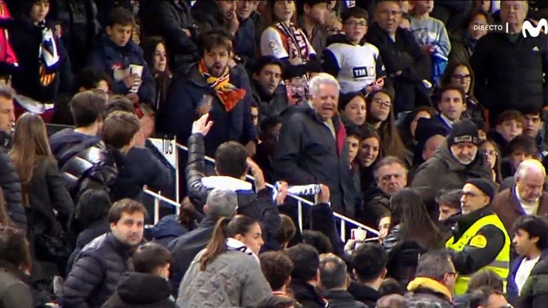 En un momento del partido se puede ver cómo al aficionado del Real Madrid le quitan la bufanda y la tiran, él la vuelve a recoger, pero se la vuelven a quitar y a tirar por los suelos. El aficionado valencianista en cuestión se encara con él mientras que otros tratan de poner algo de paz. La situación continúa mientras se ve como el fan blanco se marcha de la grada, metiéndose por las escaleras al interior, y algún que otro fan valencanista sigue increpándole.