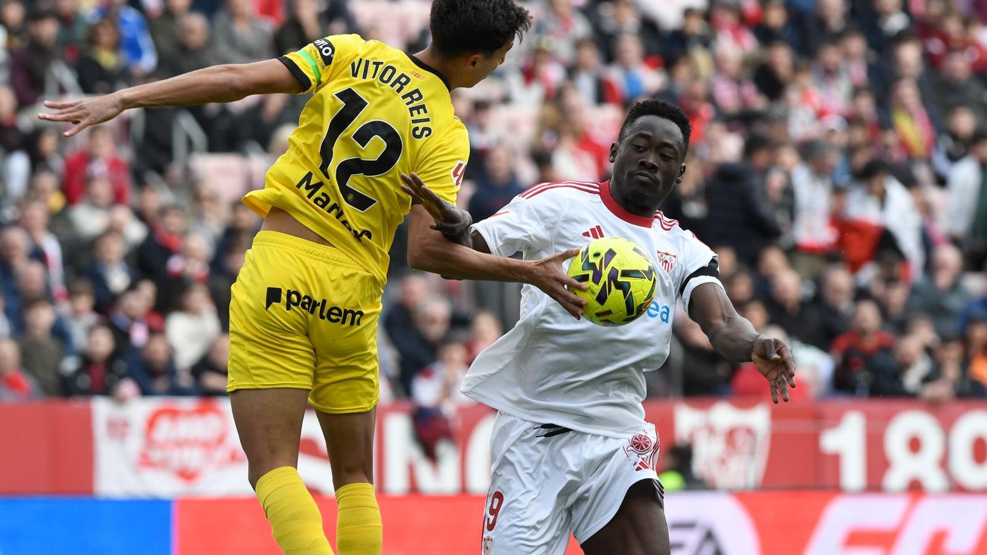 La acción, reclamada tanto por Akor Adams como Neal Maupay, como por gran parte del público, acabó en nada y el encuentro siguió jugándose con el Sevilla buscando de forma desperada el empate.