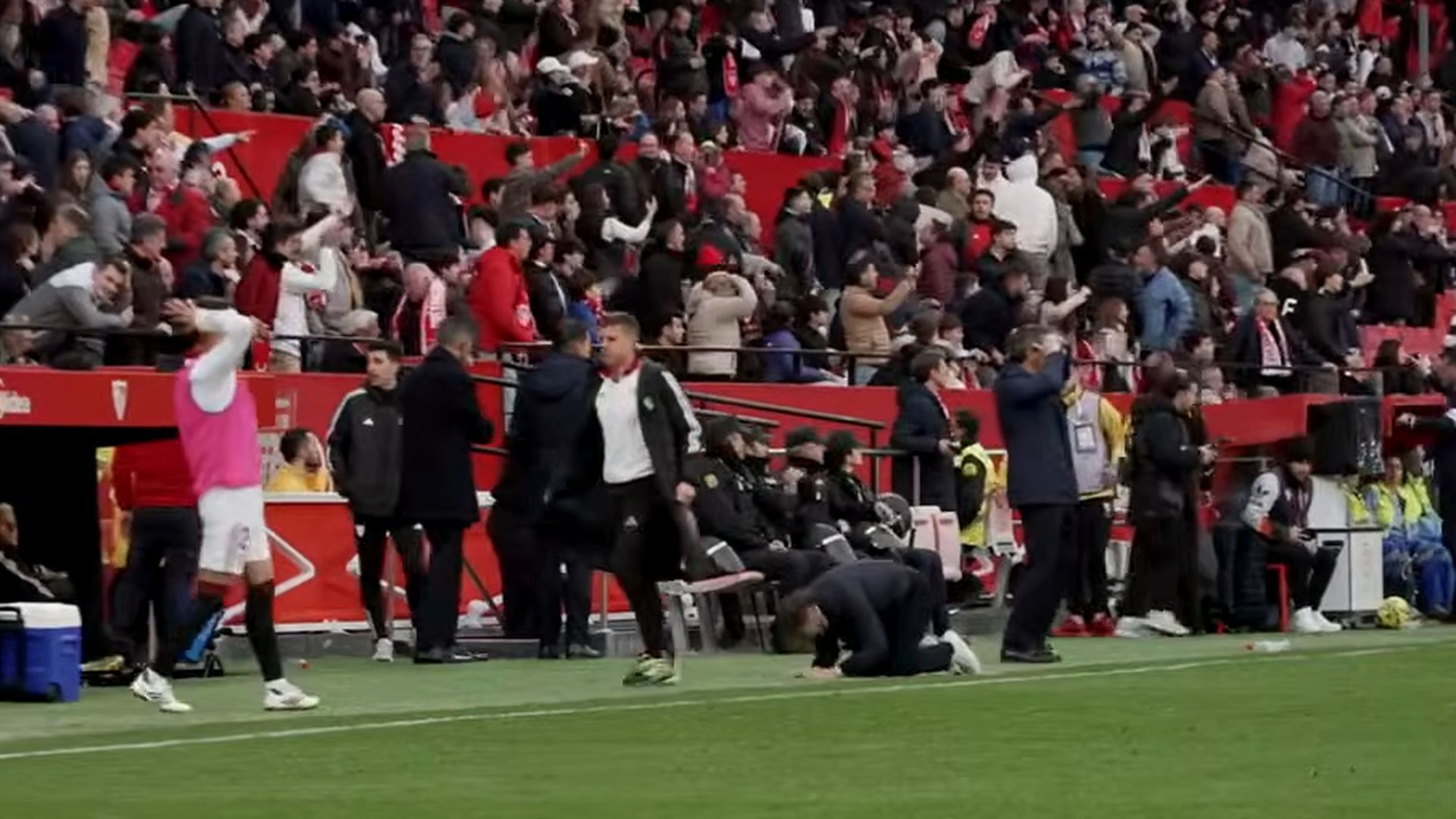 Azpilicueta enfadadísimo y Almeyda por el suelo: la reacción del banquillo del Sevilla al penalti ante el Girona