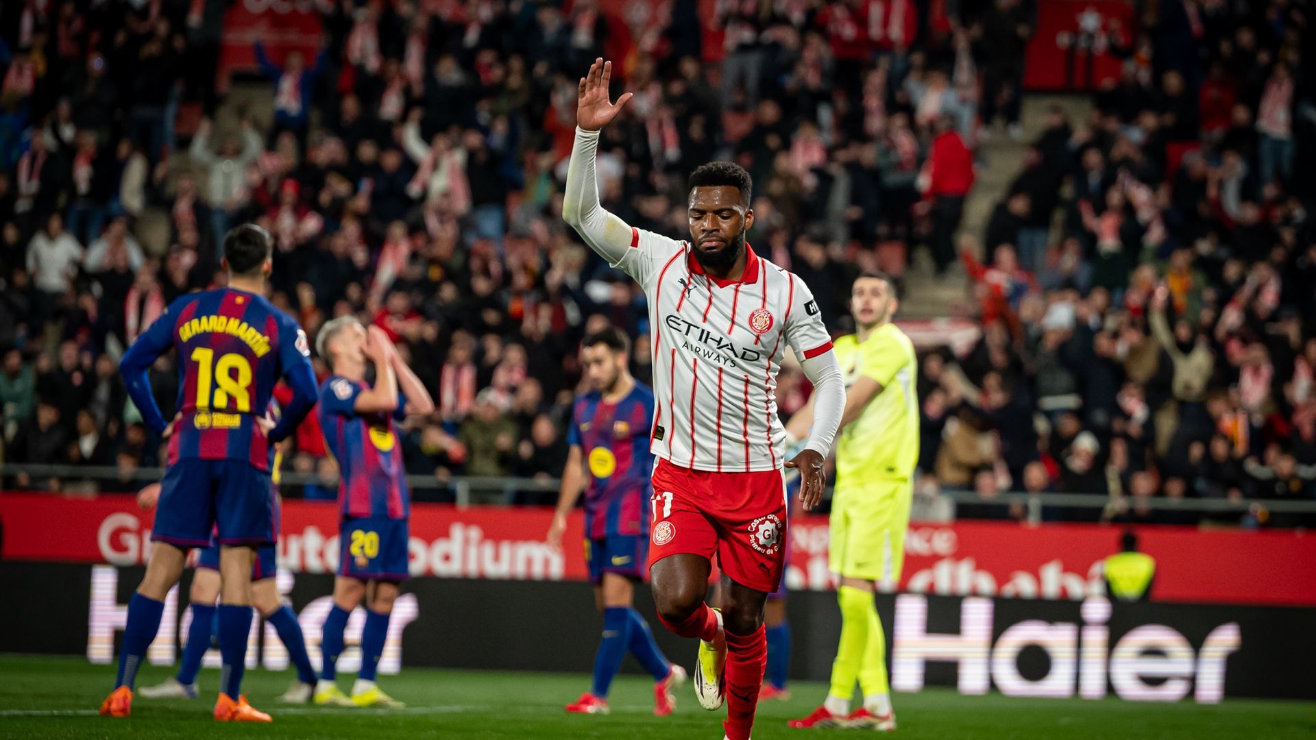Gerard Martín cortó de manera providencial un pase de Vladyslav Vanat que levantó a Montilivi de sus asientos porque dejaba solo a Viktor Tsygankov delante de Joan Garcia. Acto seguido, Raphinha disparó cerca del palo tras el enésimo pase 'marca de la casa' con el exterior de Lamine Yamal y el '10' desperdició un mano a mano más que franco delante de Paulo Gazzaniga porque intentó picar el balón sin éxito. Era un encuentro muy abierto, con muchos espacios.