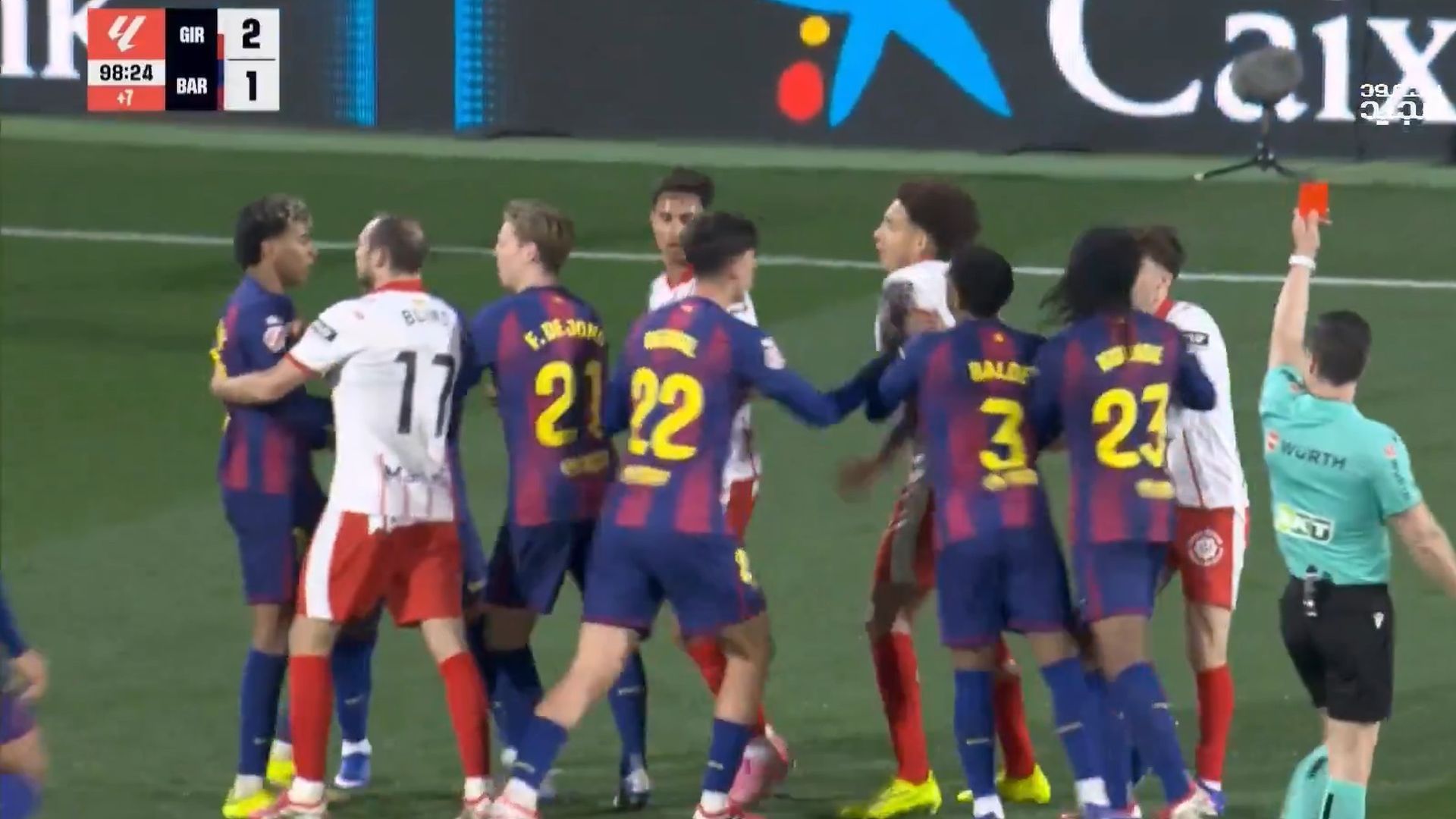 El Barcelona terminó perdiendo los tres puntos en Montilivi y también los papeles en la recta final de un choque de alta tensión. Hubo intensidad de principio a fin y eso se reflejó en las reacciones de unos y otros a la acción más polémica del choque. Se produjo con el tiempo casi cumplido cuando Joel Roca entró con mucha dureza a Lamine Yamal para frenar un ataque blaugrana. Se desencadenó la trifulca.