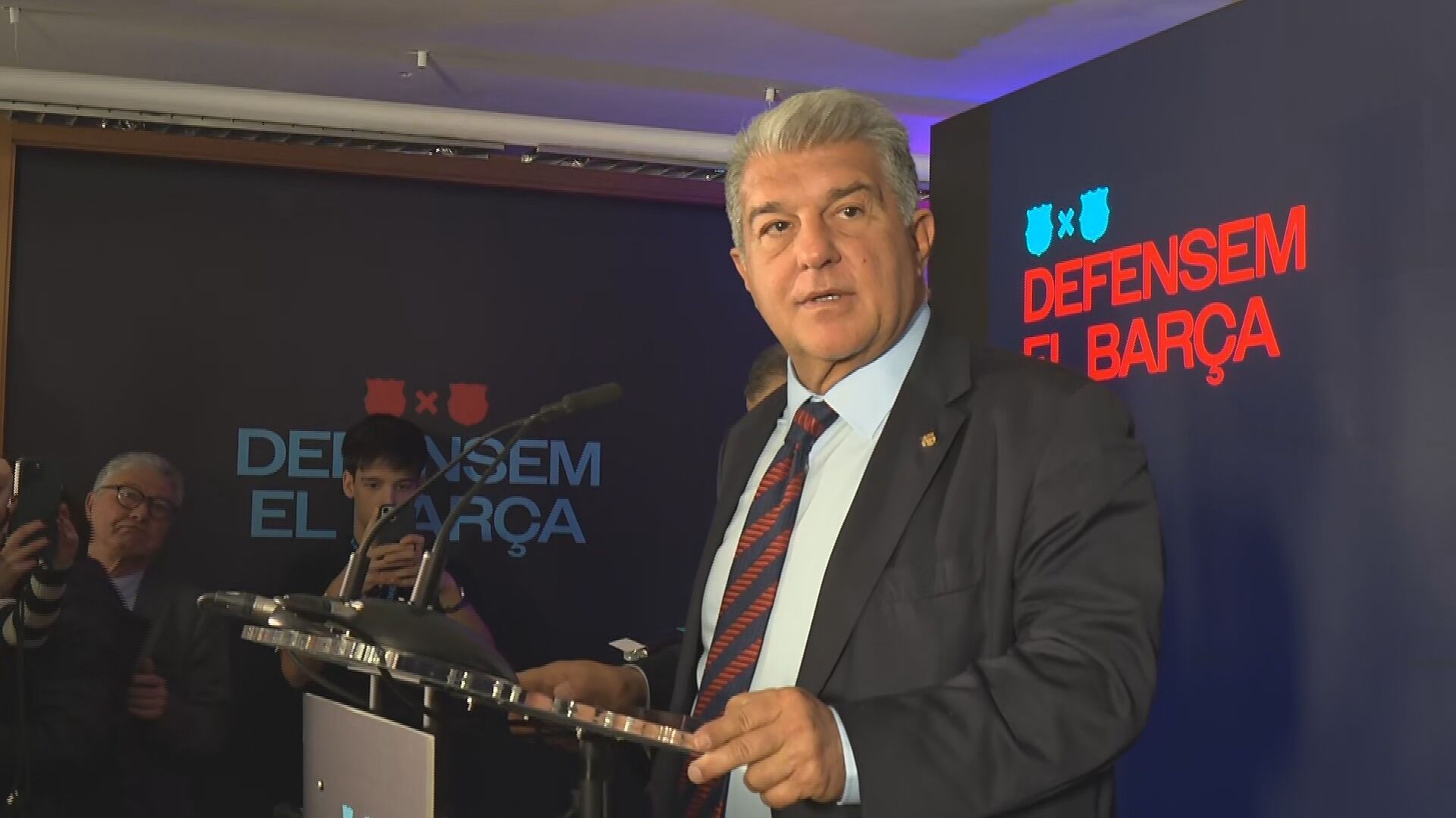 Joan Laporta presentaba su candidatura a la presidencia del FC Barcelona. Queda menos de un mes para las elecciones y ya todos los precandidatos se empiezan a mover. El expresidente culé ha hablado ante los medios para hablar de su campaña: 'Defensem el Barça'.
