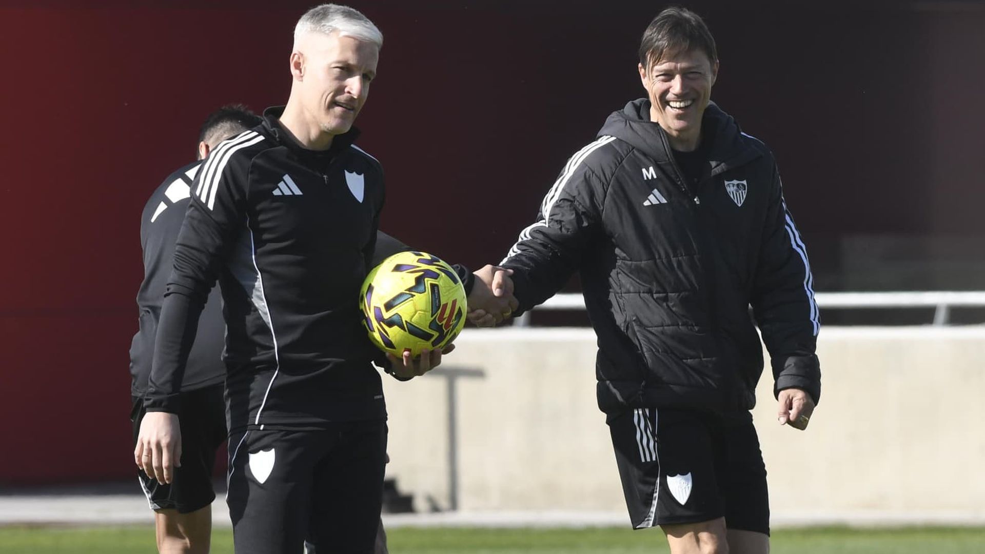 En este sentido, Almeyda fue cuestionado por el respeto que le tienen a Pellegrini y si le gustaría que algún día en el Sevilla tuviesen ese mismo amor por él, algo a lo que respondió con bromas y cariño. "Es mejor que la gente idolatre un jugador. Yo quiero cumplir mi objetivo, así estaré en paz. Después, que me regalen un jamón. Eso es lo que me gusta. Quiero a la gente feliz, a los jugadores felices, que el ambiente acá sea de felicidad, de que el Sevilla vuelva a ser competitivo. Llevamos luchando mucho, desde el primer partido de pretemporada. Queremos poner al club al lugar que merece. Después que cuelguen... la foto en los balcones eh, que no se malinterprete. Con un jamón, de estos de pata negra, me vale. Unas gambitas también...", decía entre risas.