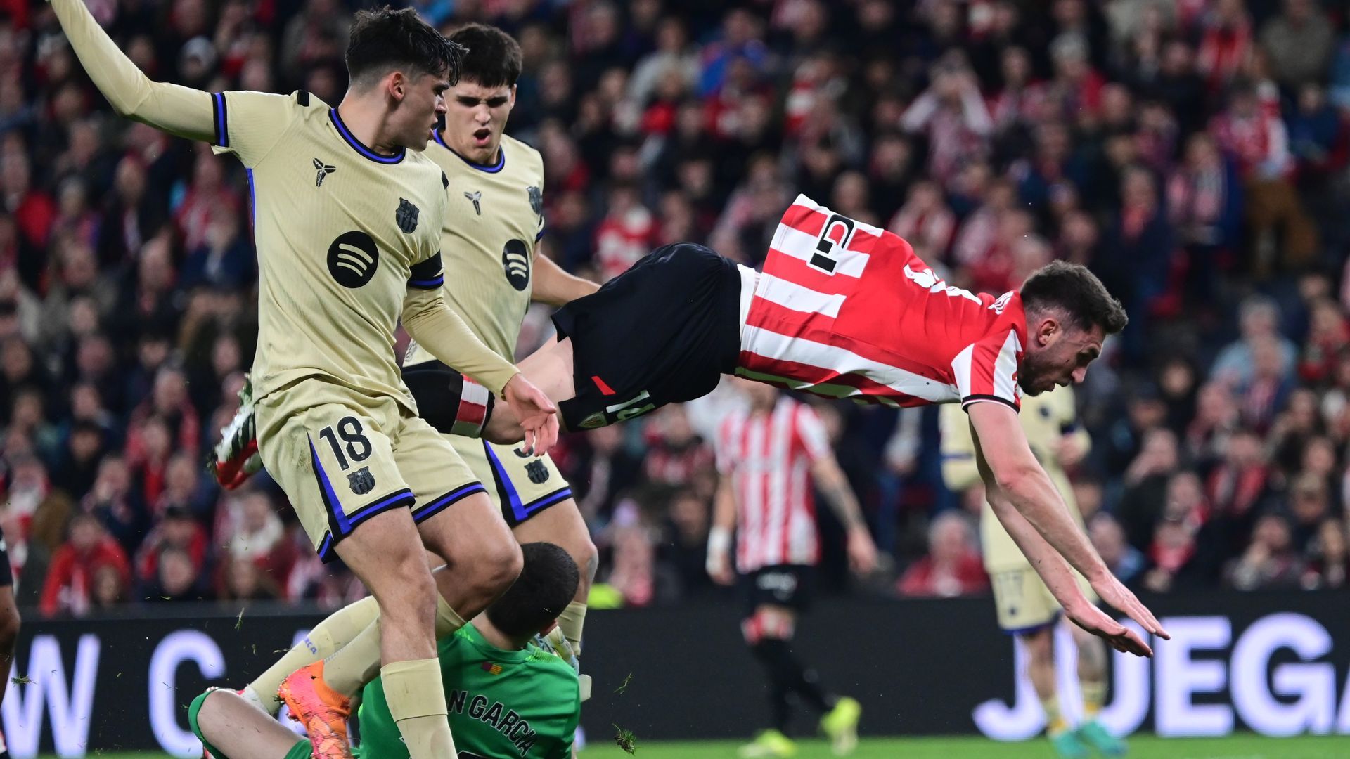 Siete minutos más tarde, la polémica cambiaba de bando. Iñaki Williams enfilaba la portería de Joan García en el minuto 57 cuando Pau Cubarsí acabó derribándole como último jugador de campo. El portero blaugrana acabó despejando el balón.