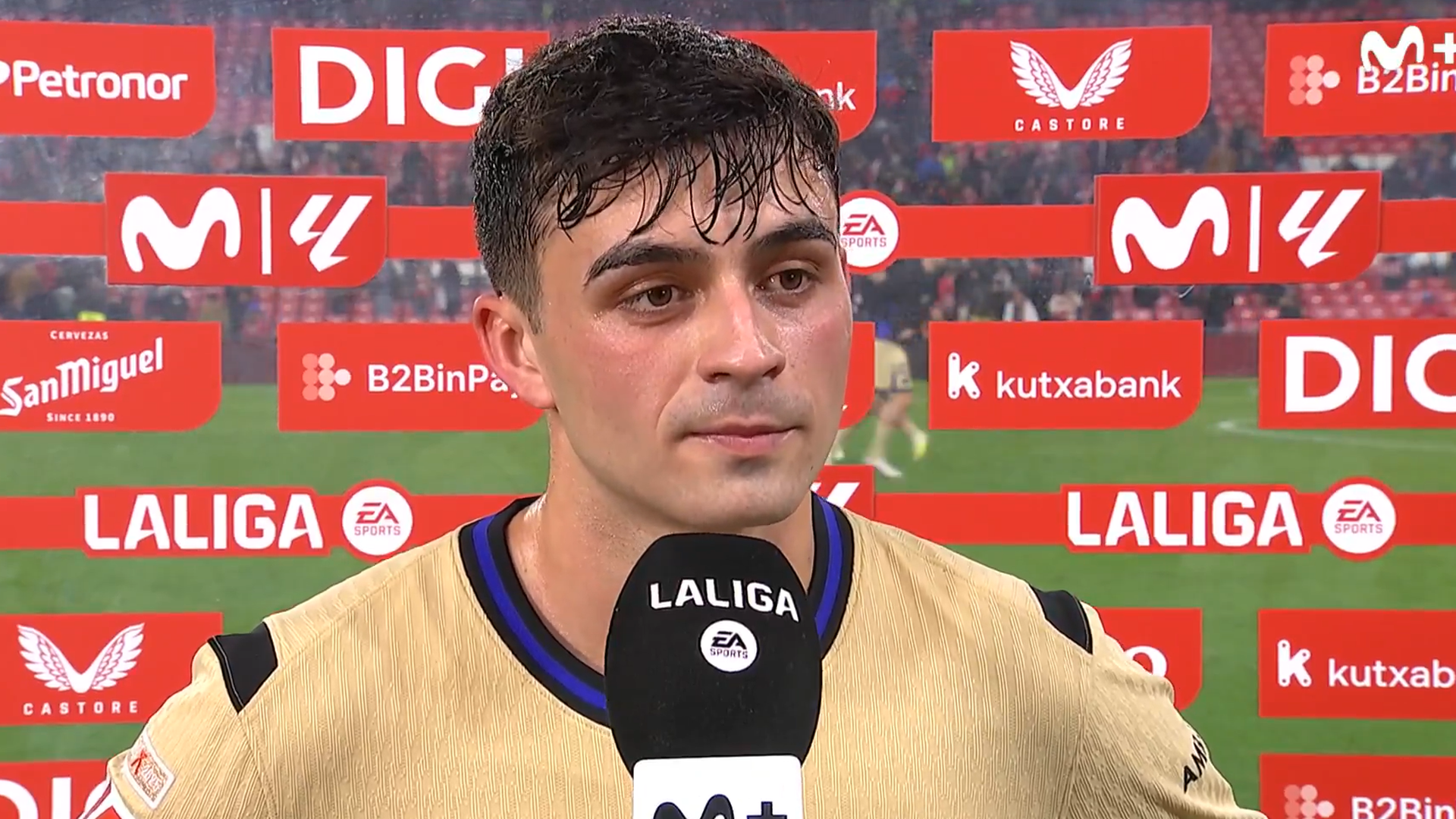 Pedri habló de lo importante de conseguir los tres puntos en San Mamés, sobre todo después de que el Real Madrid ganara en Vigo. "Muy importante la victoria, campo complicado donde presionan mucho, estábamos muy cansados y son puntos importantes para seguir, hay que seguir ajustando cosas para el martes, porque hoy no hemos circulado con ritmo".