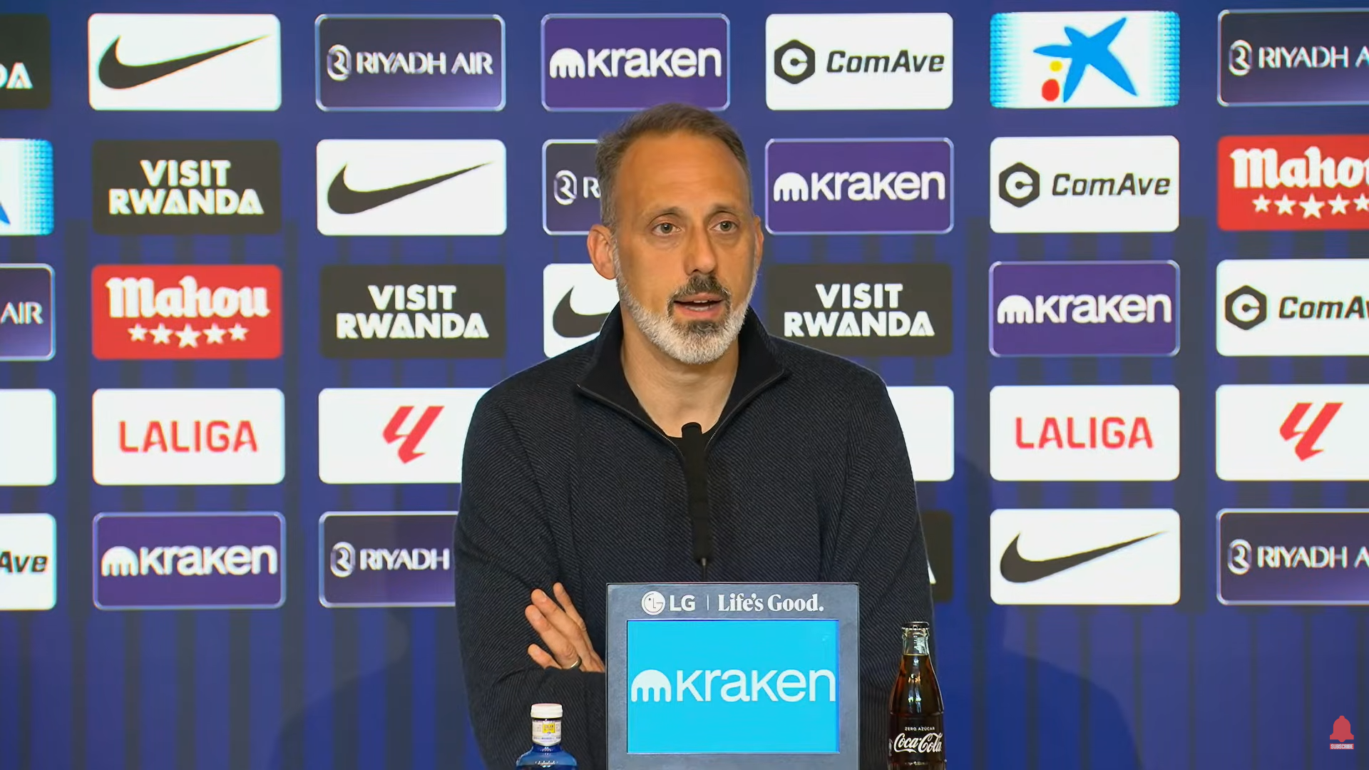 Por qué concede tanto la Real: "Dos goles a balón parado. Uno fue un rechace, un gol demasiado fácil. También un gol con Nico, solo entre dos o tres jugadores. En este momento tenemos que levantar la cabeza del suelo y, si hace falta, llevarte una tarjeta amarilla contigo. Y el tercer gol también vino de una jugada a balón parado. También concedimos muchas ocasiones, varias ocasiones. También es verdad que jugábamos contra el Atlético de Madrid. Sabemos que no tuvimos la calidad para llevar suficientes jugadores al área. Y no hicimos lo suficientemente bien el trabajo en la presión en ambas fases. Ya sea en la presión alta, donde debemos ir con total convicción e intensidad, o cuando estamos en bloque bajo. En ambas fases de nuestra defensa no fuimos lo suficientemente buenos y, por eso, concedimos tantas ocasiones".