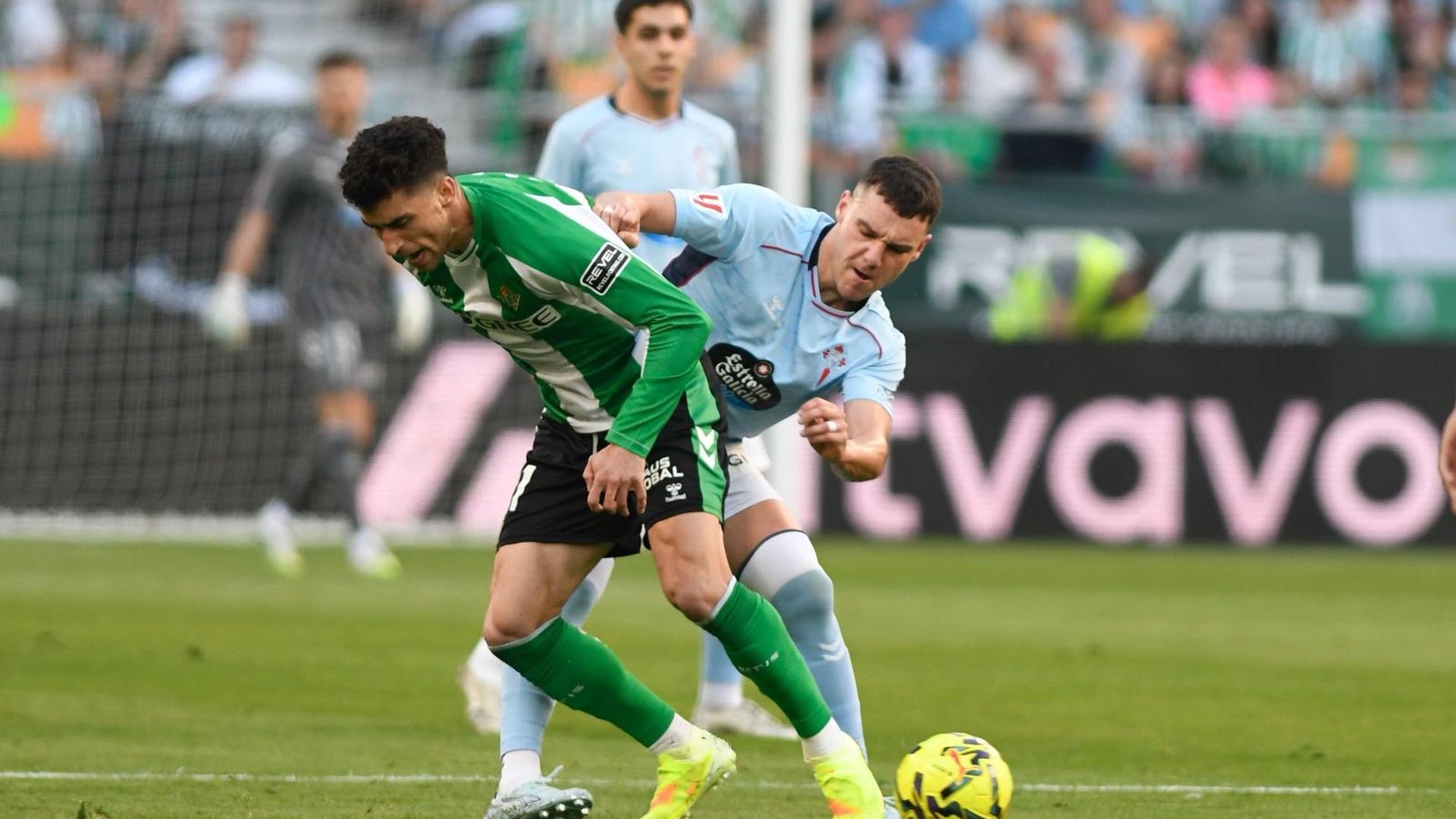 En estas, sea por necesidad, por llegar desde atrás o simplemente por haber entendido mejor el contexto, el primero en golpear fue el Celta. A pesar del gran ambiente verdiblanco, el Betis no empezó bien y Álvaro Valles no acertaría ante Jutglá en la primera gran ocasión (0-1, m. 4). Los pitos aparecían mucho antes de lo previsto.