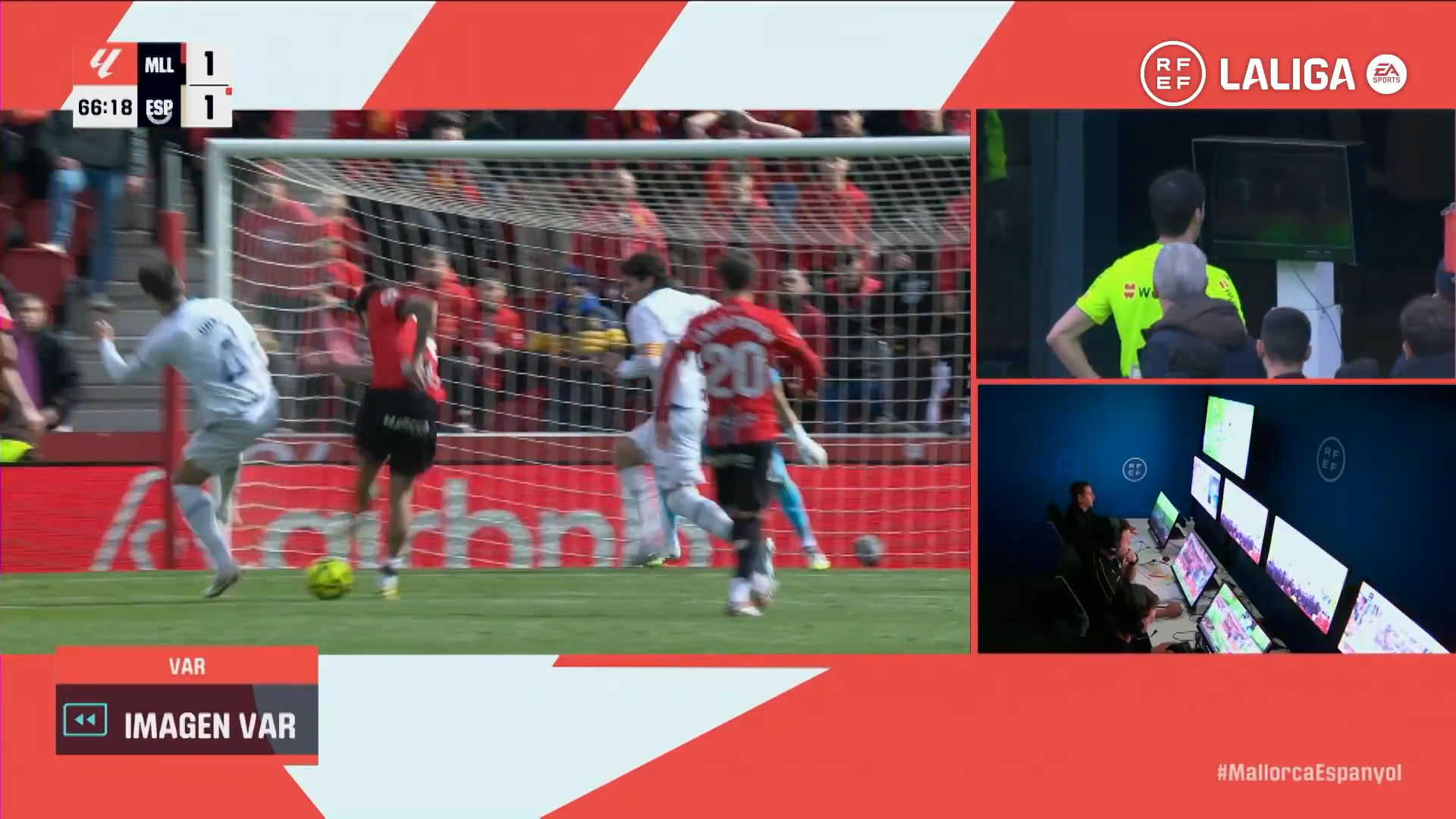 "El VAR, tras revisar minuciosamente la jugada, recomienda al árbitro revisarla porque considera que antes del tiro, el primer jugador del Mallorca golpea temerariamente en el pie del defensor, sin llegar a toca el balón, lo que se debería decretar falta del delantero en fase de ataque. Tras la revisión, decide mantener el gol", continuó exponiendo.