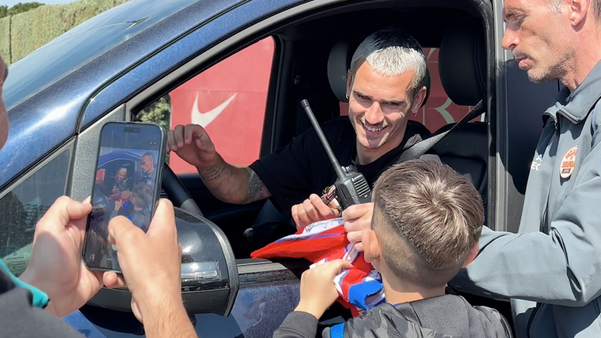 La salida del entrenamiento de hoy del Atlético de Madrid ha dejado una imagen curiosa con Antoine Griezmann como gran protagonista. El fichaje del jugador francés por el Orlando City de la MLS se oficializó durante el día de ayer y hoy ha vuelto a la normalidad realizando su primera sesión de entreno con el club rojiblanco después del anuncio de su marcha a Estados Unidos. El máximo goleador de la historia del Atlético sigue siendo uno de los jugadores favoritos de los más pequeños y al acabar el entrenamiento, un niño se ha acercado a su coche dejando un momento entrañable. El pequeño aficionado le rogó al galo que se quedara en el club colchonero y que no se fuera. Un sentimiento generalizado en la hinchada rojiblanca ya que el de Macon sigue siendo una pieza importante para Diego Pablo Simeone y su marcha puede dejar un gran vacío en la delantera del Atlético.