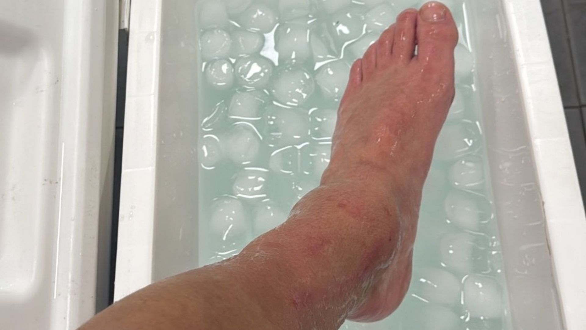 Hugo Álvarez muestra el estado de su tobillo tras el plantillazo de Unai Núñez en el Valencia-Celta