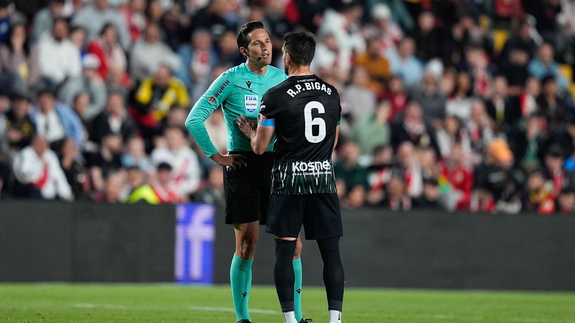 La jugada en cuestión ocurrió en la primera mitad. En el minuto 22, Bigas vio la primera amarilla del partido después de agarrar de manera clara a Unai López cortando así una contra clara. Pero fue en el 39' en dónde se marchó expulsado por una doble amarilla mostrada por Munuera Montero.