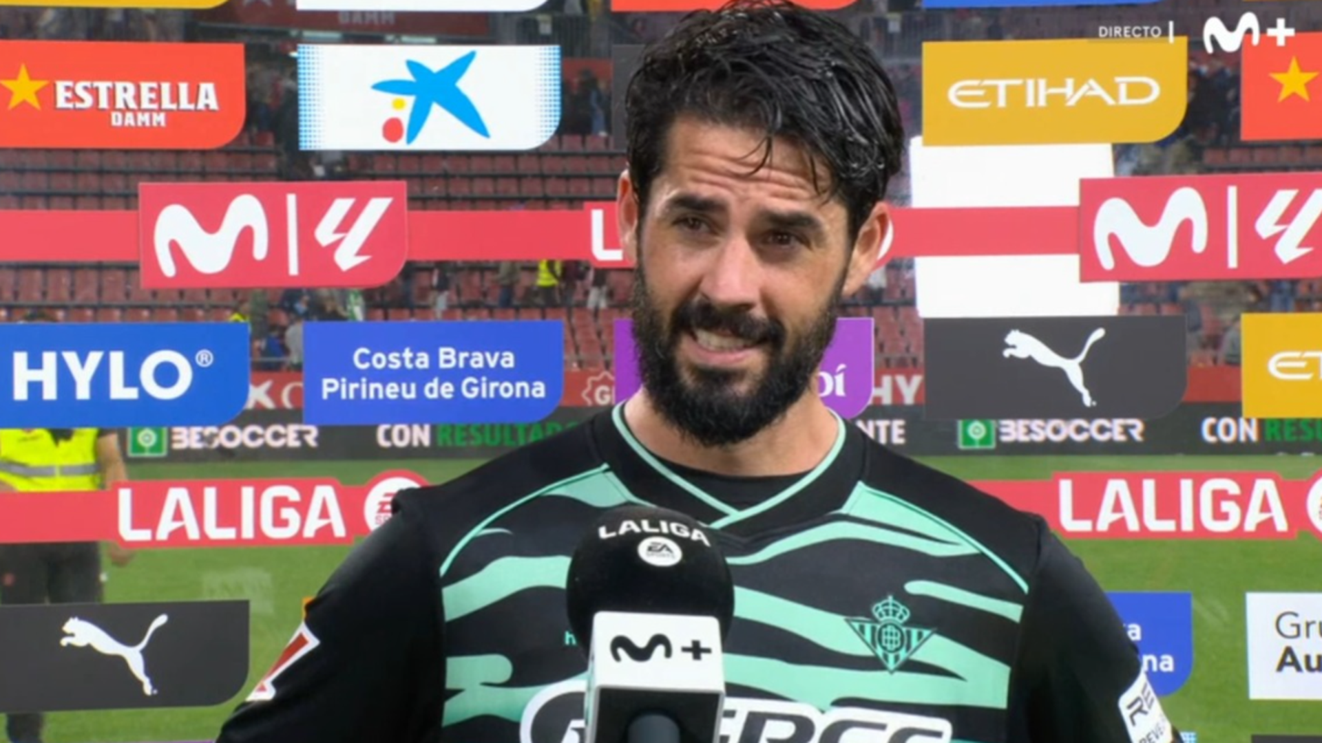 Isco Alarcón, capitán del Betis, atendió a los micrófonos de Movistar LALIGA tras el triunfo ante el Girona (2-3) con una sonrisa de oreja a oreja a pesar de los golpes recibidos y reconoció que "era importante ganar hoy".