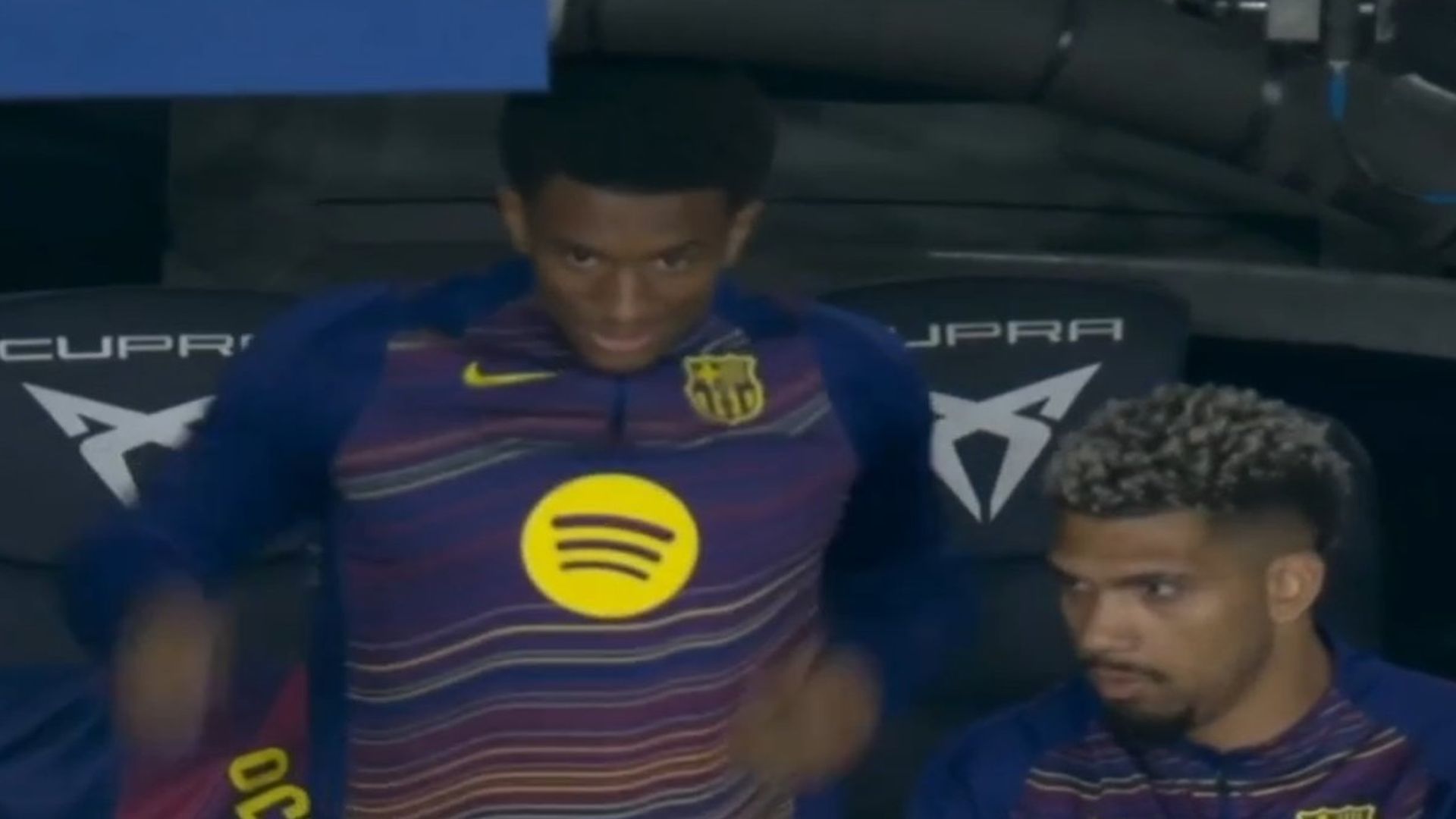 El lateral español se levantó rápidamente de su asiento, pero lo hizo con una sonrisa en su cara que no ha gustado nada a los culés. Balde comenzó a hablar con Araujo, pero la sonrisa no se le quitó del rostro mientras Cancelo seguía siendo atendido en el terreno de juego.