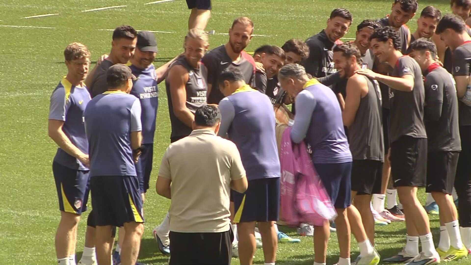 El técnico argentino cumple hoy 56 años y los jugadores y miembros del staff técnico del Atlético de Madrid le han realizado un pasillo de collejas
