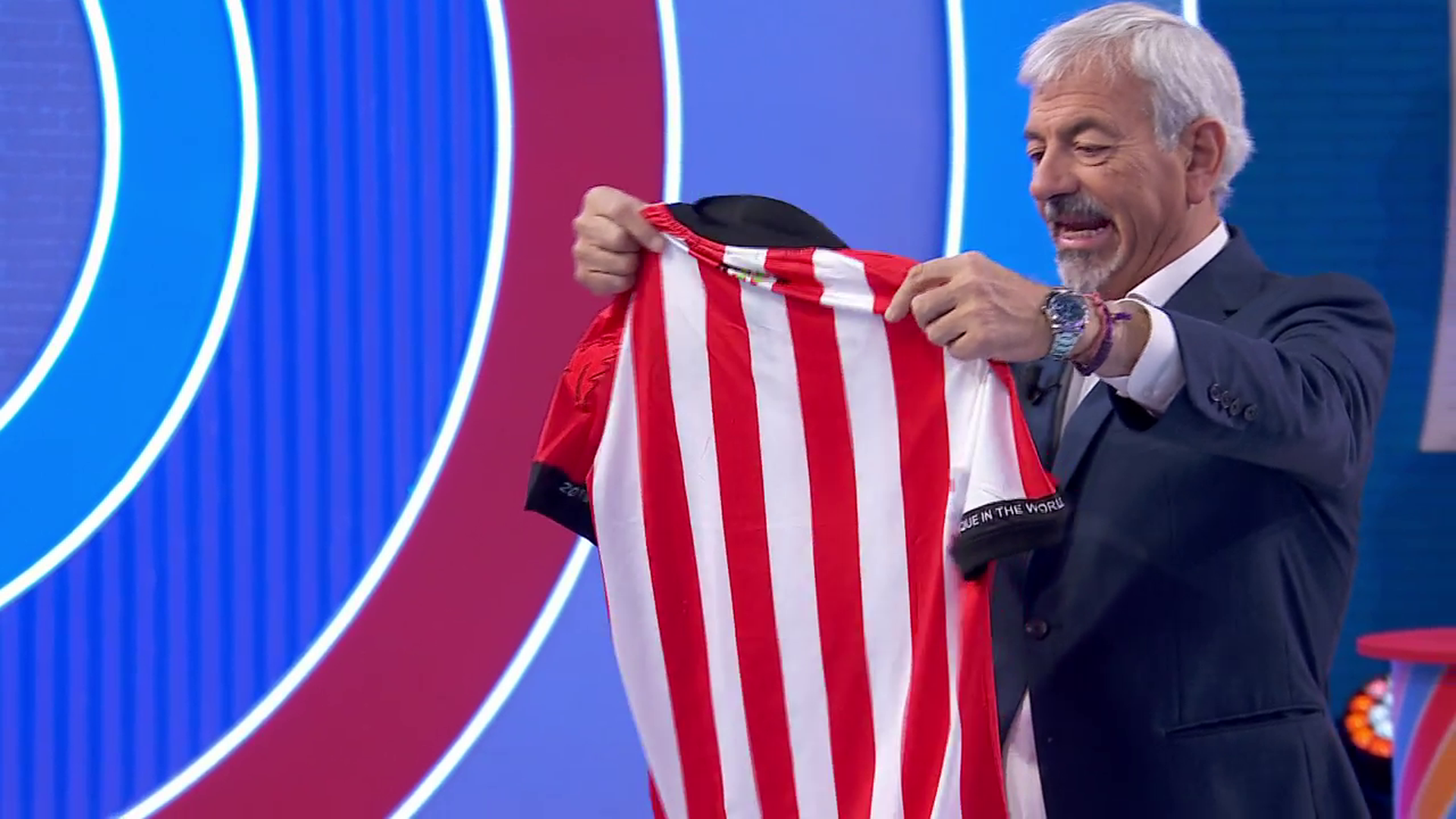 Uno de ellos era de los que participaba y le dio una camiseta del club vasco. Después de cantar el himno, Carlos Sobera hizo una confesión. ''Yo dije, presento 'El precio justo' si viene gente del Athletic. Una vez que tengo esto me puedo marchar a casa, ahí os quedáis'', comentó despertando las risas en el público.