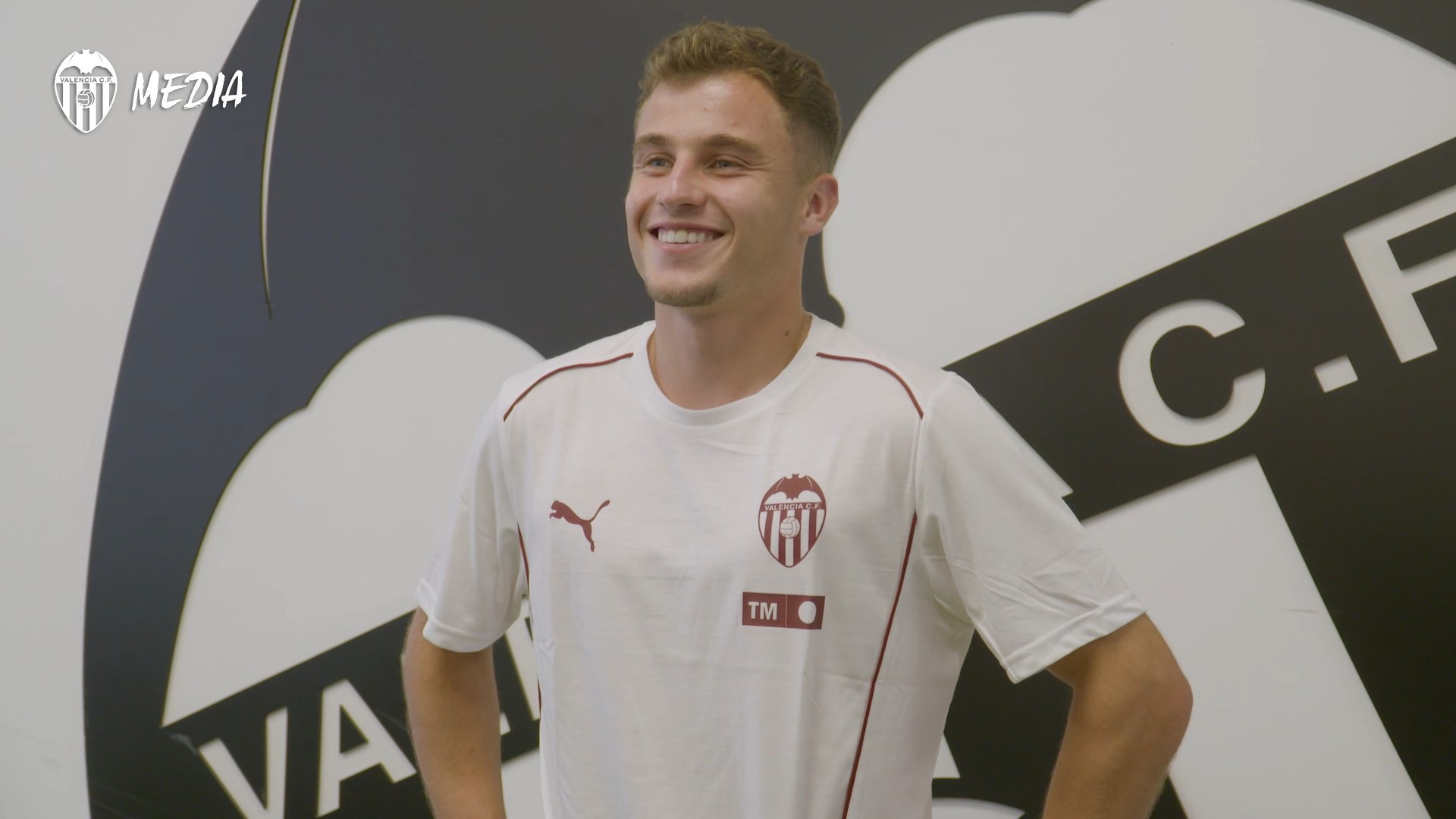 Sensaciones después de su fichaje por el Valencia CF Súper ilusionado, poder estar aquí me hace muy feliz, es un sueño. Tengo muchas ganas de poder empezar ya, ponerme la camiseta y poder empezar a trabajar con mis compañeros.