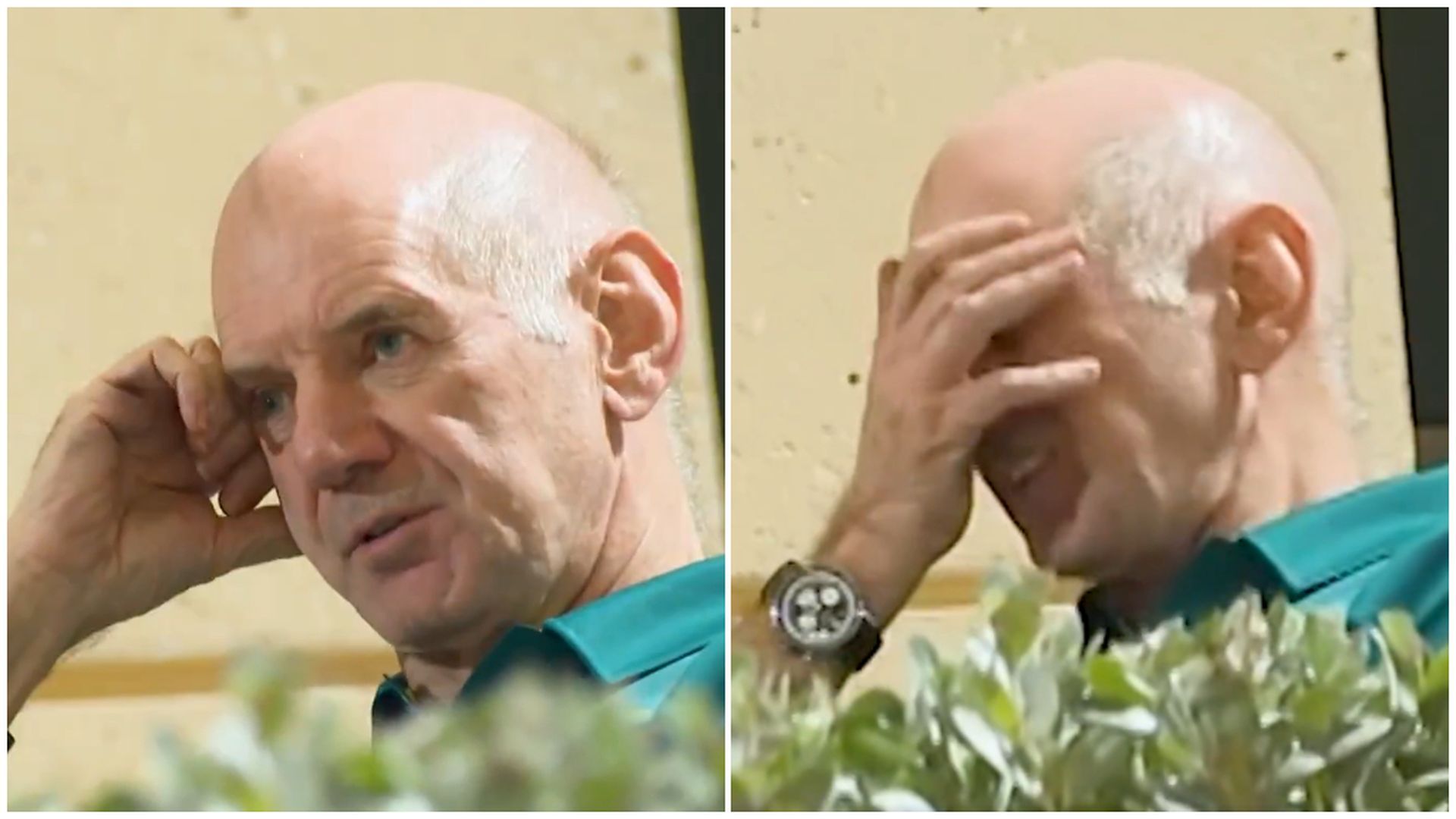Newey es de esas personas que le cuesta disimular al gesticular. Su cara y su expresión le representa. Y en esta ocasión, su frustración, desesperación y cansancio estaban claramente representadas en su cara. El tono de preocupación parecía ser el síntoma en la reunión, y es que al hablar Lance y dar explicaciones de sus sensaciones al volante, Adrian no podía hacer otra cosa que llevarse las manos a la cara.