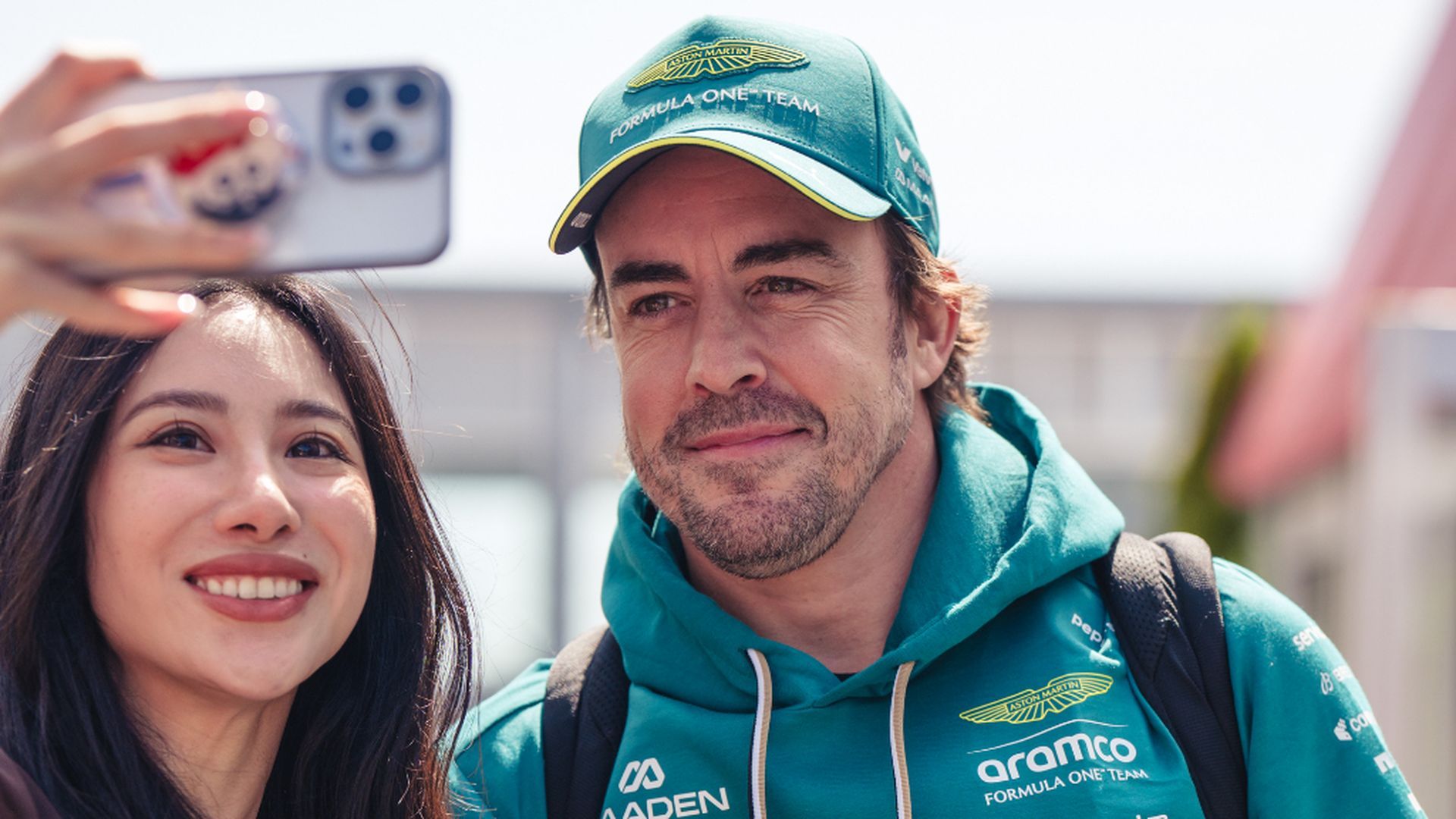 Con el AMR26 esperándole en el box, Fernando Alonso llegó a Suzuka con la afición volcada y muy sonriente