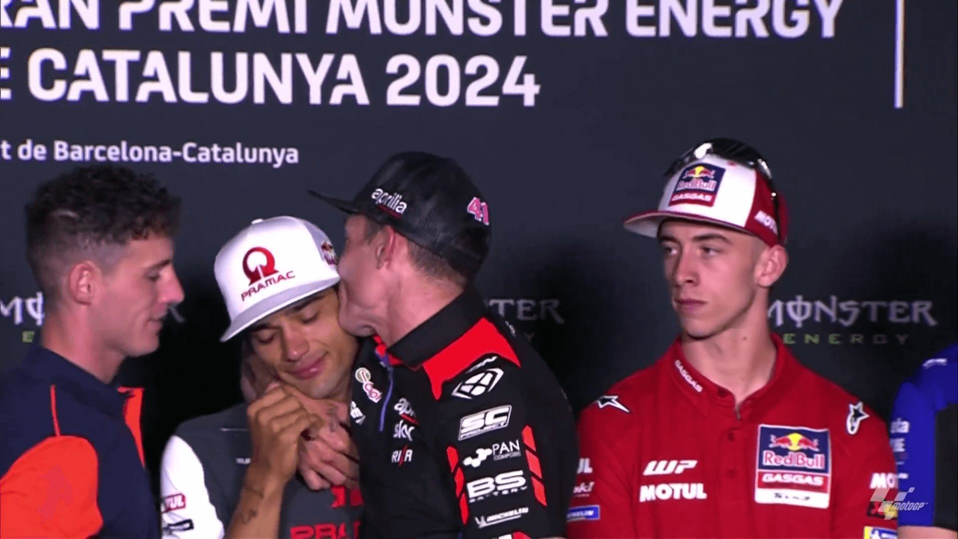Aleix Espargaró pondrá al finalizar la presente temporada punto y final a su carrera deportiva en MotoGP. El catalán así lo ha anunciado en una rueda de prensa extraordinaria, a las puertas del Gran Premio de Montmeló de este fin de semana. Tras dos décadas en el Mundial, Espargaró cree que ya ha llegado el momento de descansar y de estar con la familia. El acto en cuestión ha tenido absolutamente de todo: desde la emoción del propio Aleix al ver una recopilación de sus mejores momentos hasta las lágrimas entre él y su hermano Pol, incluso ha habido cabida para las bromas. Pero Espargaró no ha estado solo. Su familia y sus rivales también han estado presentes en una rueda de prensa muy sentida. Antes, varios pilotos valoraban la figura de Aleix. "Si quiere pasar más tiempo en casa, que hasta ahora no ha sido así, es algo entendible. Ha dicho hasta aquí cuando ha querido, no le han forzado a irse, y eso para un piloto es muy importante. Siempre hemos tenido nuestras diferencias, porque él es alguien que dice las cosas a la cara y yo también, es alguien que te entiende. Como piloto es un ejemplo para todos, de no darte por vencido. A veces el camino no es tan llano como uno cree", describe Álex Márquez. Joan Mir, por su parte, valoraba el ejemplo a seguir que es y será un piloto como Aleix. El mallorquín, además, no haría ascos en terminar encima de su moto a partir del 2025. "Aleix, durante los últimos años, ha dado una lección a todos. Empezó en una situación complicada en MotoGP y cuando por fin ha tenido una moto competitiva, ha estado ahí. Eso es realmente difícil de conseguir. El tío es un ejemplo, un currante. Que sea muy feliz y que disfrute de la vida, porque se lo merece", apunta el de Honda.