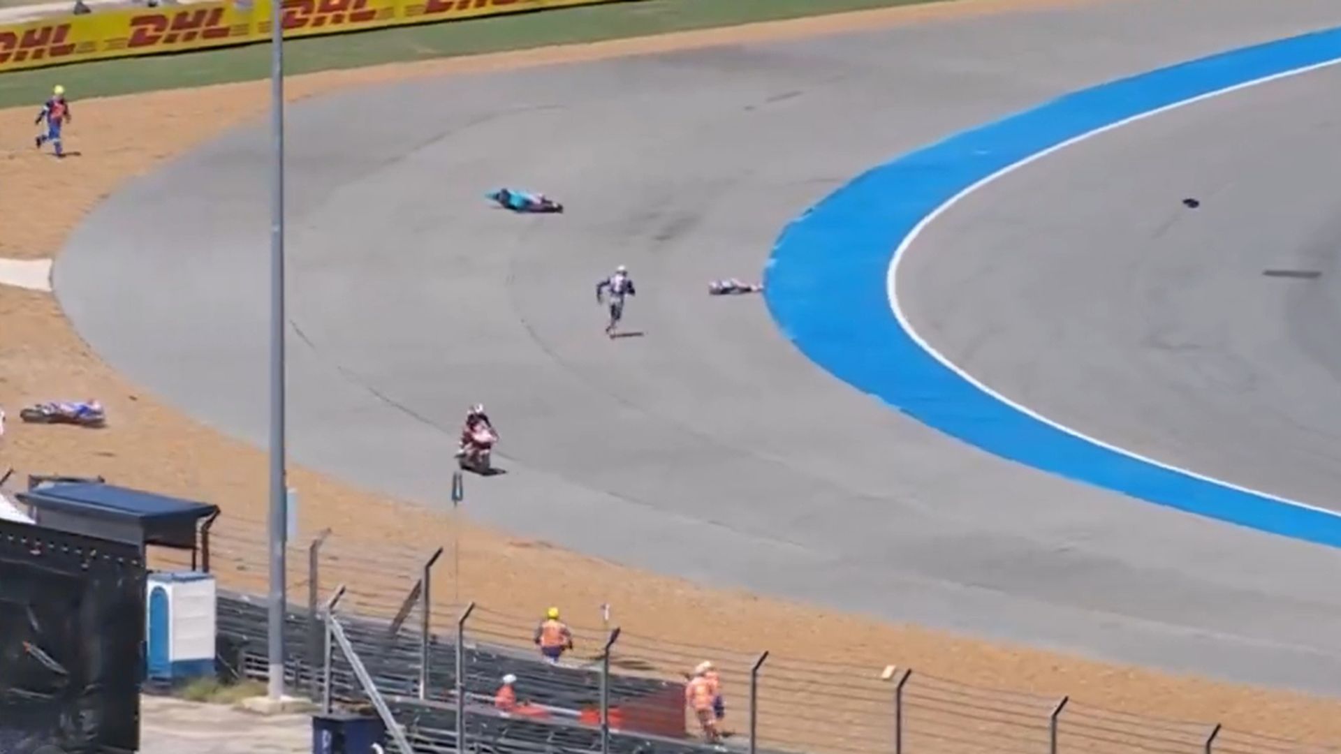 Primer mal trago de la temporada. El Mundial de Motociclismo empieza un año más recordando lo peligroso que es este deporte. Por suerte, esta vez, no hay que lamentar absolutamente nada: solo toca quitarse el mal sabor del cuerpo. David Alonso ha sufrido, durante la carrera de Moto2, una escalofriante caída. A pocas vueltas de empezar la prueba en el Gran Premio de Tailandia, el piloto del equipo de Jorge Martínez Aspar fue arrollado por Filip Salac, en un accidente en el que también estuvo involucrado Senna Agius. La imagen es estremecedora. Y es que el piloto colombiano quedó en mitad de la pista, golpeándose duramente con la moto de Salac. Las primeras reacciones, incluso del propio Salac, fue de ir rápidamente a ver cómo estaba. Poco después, la bandera roja ondeaba para parar la carrera y para atender a un Alonso que parecía estar inconsciente en mitad de la pista.