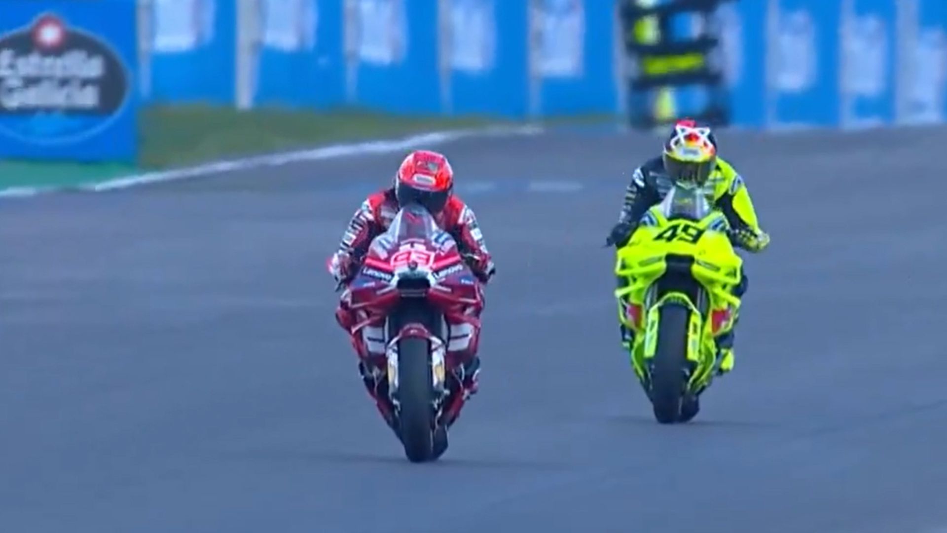 Di Giannantonio empezó la carrera bastante bien, manteniéndose en primera posición y poniendo tierra de por medio con sus rivales. Por atrás la sorpresa la había dado Fabio Quartararo, que se había colocado segundo en las primeras curva. Como si de un espejismo se tratara, la Yamaha del francés fue cayendo posiciones. Márquez, Marco Bezzecchi y Jorge Martín se pusieron el mono de trabajo y no solo se quitaron de encima a Quartararo sino que se pusieron en 'modo ataque' hacia Di Giannantonio.