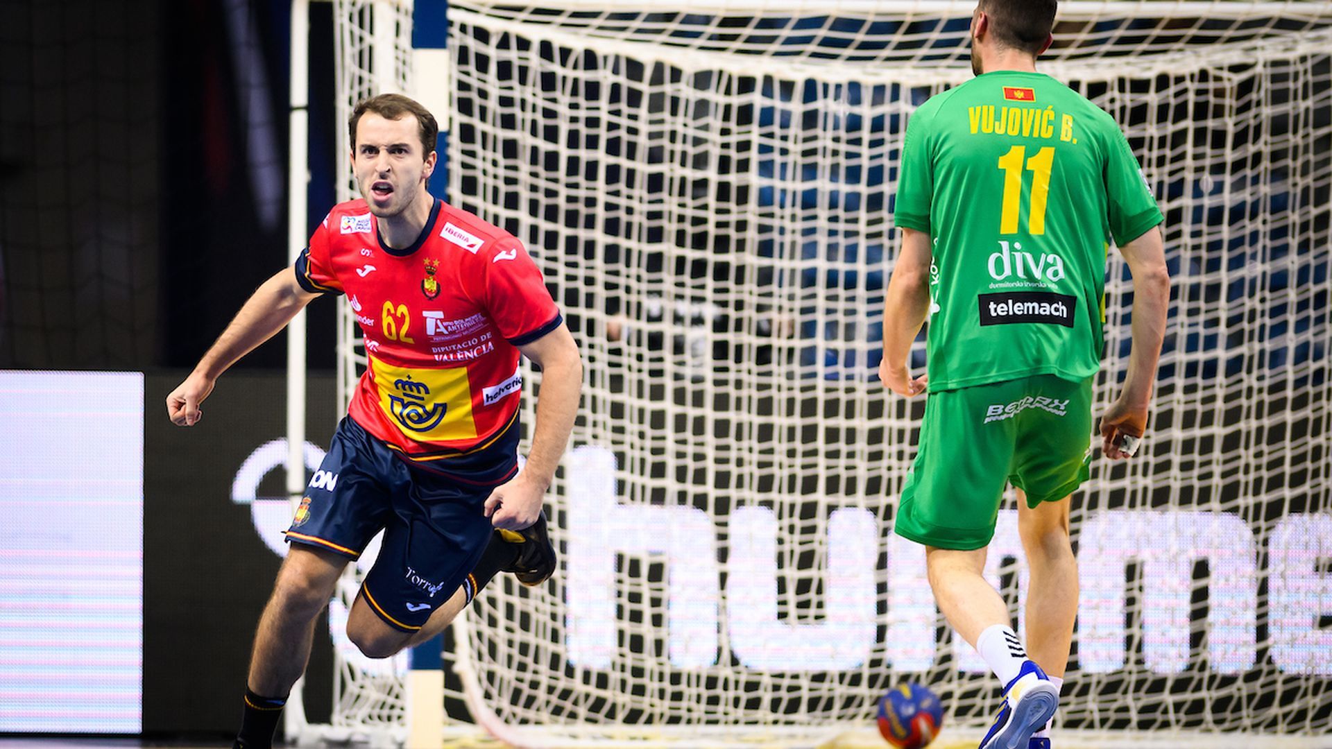30 - España: Pérez de Vargas (1); Solé (1), Garciandia (2), Guardiola (-), Peciña (-), Dani Dujshebaev (4) y Ángel Fernández (5) -equipo inicial- Corrales (ps), Maqueda (1), Alex Dujshebaev (4), Figueras (3), Casado (-), Tarrafeta (3), Sánchez-Migallón (-), Odriozola (6, 3p) y Dani Fernández (-) 25 - Montenegro: Nebojsa Simic (2); Radovic (-), Branko Vujovic (7), Andjelic (1), Cepic (1), Milos Vujovic (2p) y Grbovic (3) -equipo inicial- Matovic (ps), Bakic (1), Lazovic (2), Kaludjerovic (-), Stefan Vujovic (1), Sevaljevic (-), Bozovic (3), Lasica (2) y Vujacic (-) Marcador cada cinco minutos: 3-4, 5-4, 7-7, 10-8, 13-10 y 15-12 (Descanso) 17-14, 18-16, 21-19, 24-21, 27-23 y 30-25 (Final) Árbitros: Brunner y Salah (SUI). Excluyeron por dos minutos a Alex Dujshebaev, Maqueda, Sánchez Migallón y Peciña por España; y a Cepic, Grbovic (2), Bozovic y Lazovic por Montenegro. Incidencias: Encuentro correspondiente a la primera jornada del grupo B de la primera fase del Mundial de Polonia y Suecia disputado en el Tauron Arena de Cracovia ante unos 700 espectadores.