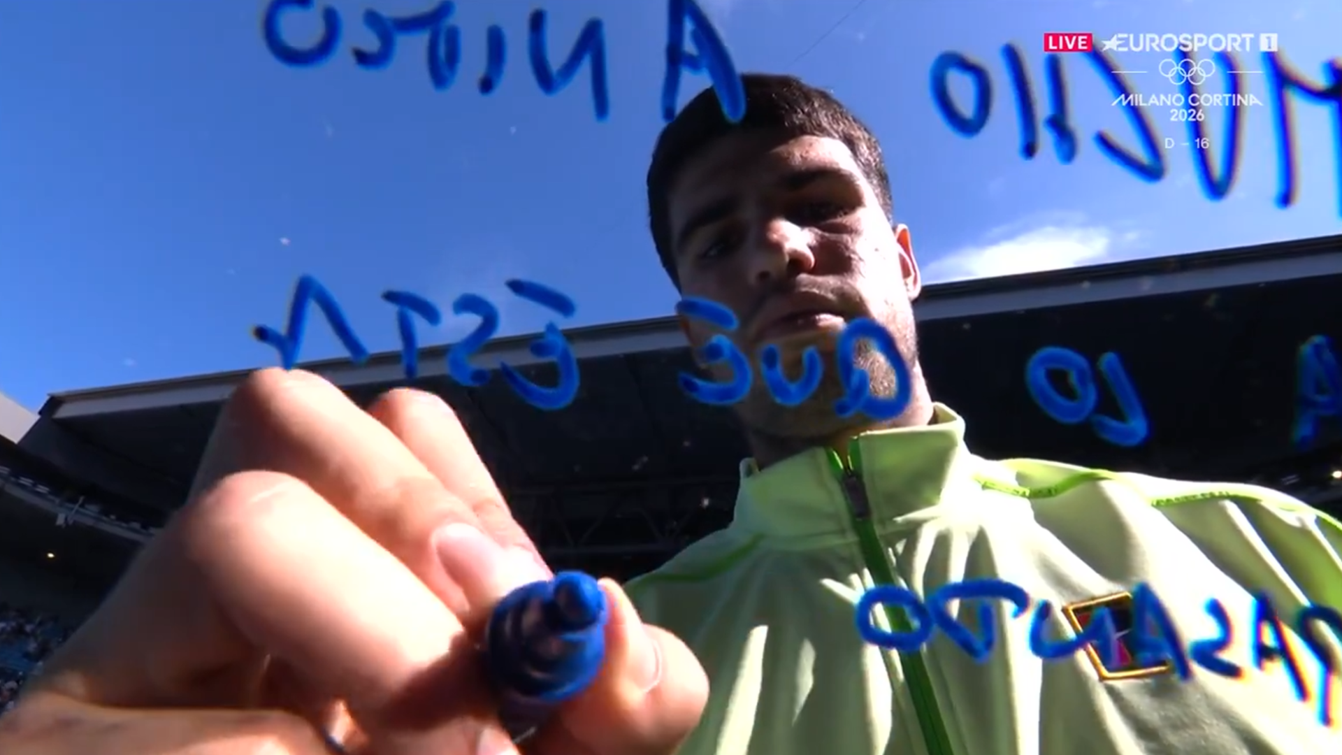 "Mucho ánimo con lo que está pasando en España", escribió Alcaraz sobre la lente. Un mensaje que iba dedicado a las 42 víctimas mortales del accidente de trenes registrado en Adamuz el pasado domingo.