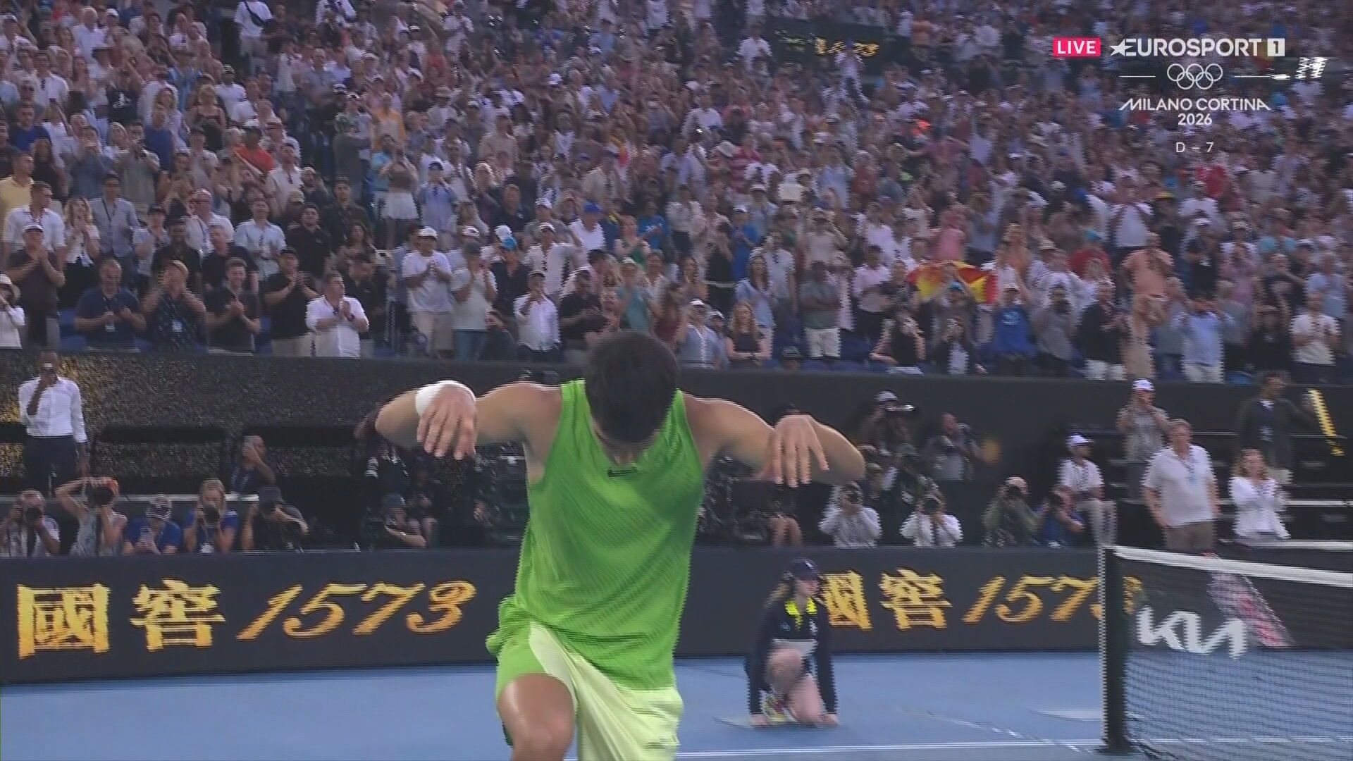 Carlos Alcaraz ha alcanzado su primera final del Open de Australia y lo ha hecho de forma épica. Remontó un partido a Zverev cuando ya parecía contra las cuerdas y con algunas problemas físicos que le hicieron flaquear durante algunos momentos del encuentro. Hubo un detalle en su celebración que no ha pasado desapercibido.