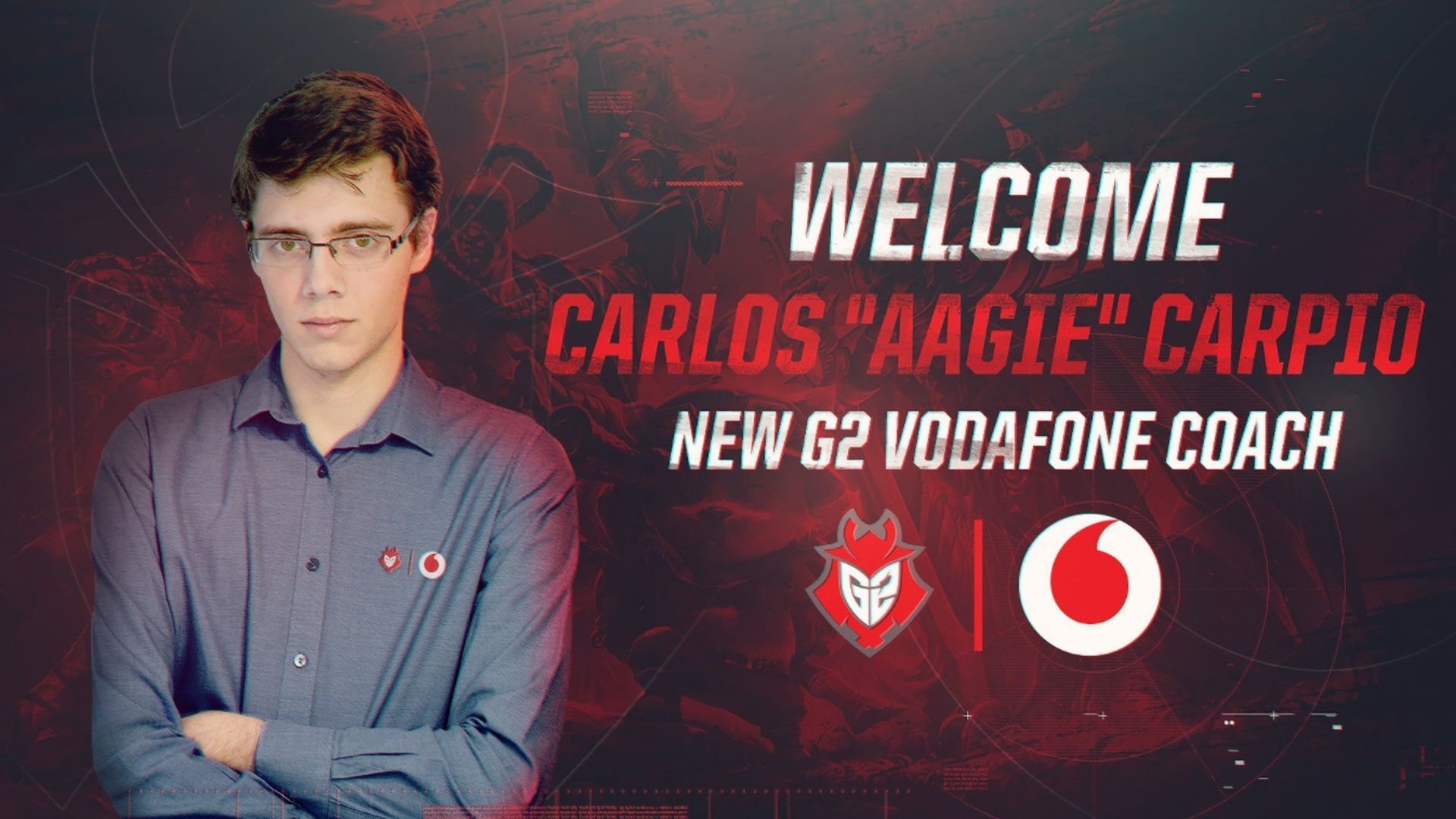 Carlos 'Aagie' Carpio afronta uno de los retos más importantes de su carrera profesional al ponerse al mando de G2 Vodafone como entrenador, por eso hemos querido conocer a fondo cómo ve su plantel para luchar en esta primera temporada de 2018. Después de pasar por Dimegio, Team Heretics, Fnatic y ThunderX3 Baskonia con diferentes roles, Aagie toma ahora la responsabilidad como head coach en un equipo de Superliga Orange con el objetivo de luchar cara a cara con los mejores con un quinteto formado por Agresivoo, Hero, Roison, Nixerino y Homi en el que Sendo partirá de inicio como suplente. ¿Cómo te llega la oportunidad de ponerte al frente de G2 Vodafone? Tengo buenas relaciones personales desde hace un par de años con Mapache y además G2 decidió continuar con Homi. Como ambos me conocían y necesitaban un coach contactaron conmigo, y yo acepté porque me parecía un proyecto muy interesante con muchas expectativas. ¿Ha habido varios cambios en la plantilla, cómo ha sido la toma de decisiones? Las decisiones han sido tomadas en conjunto entre todo el staff, siempre basadas en lo que hemos ido probando. Nixe y Homi eran jugadores con los que se contaban, su trabajo con la organización ha sido bueno han demostrado estar muy capacitados al cierre de la temporada anterior.